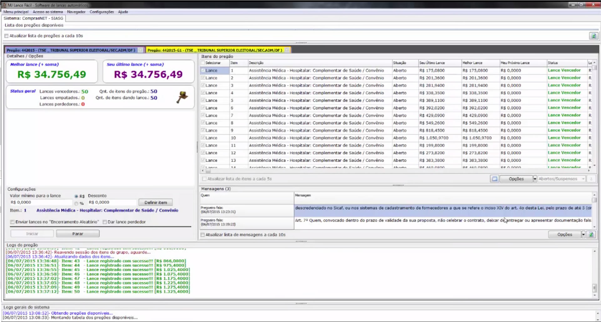Sistema para lances automáticos em pregões eletrônicos, esteja sempre na frente minimizando erros e obtendo os cálculos automaticamente para os lances..