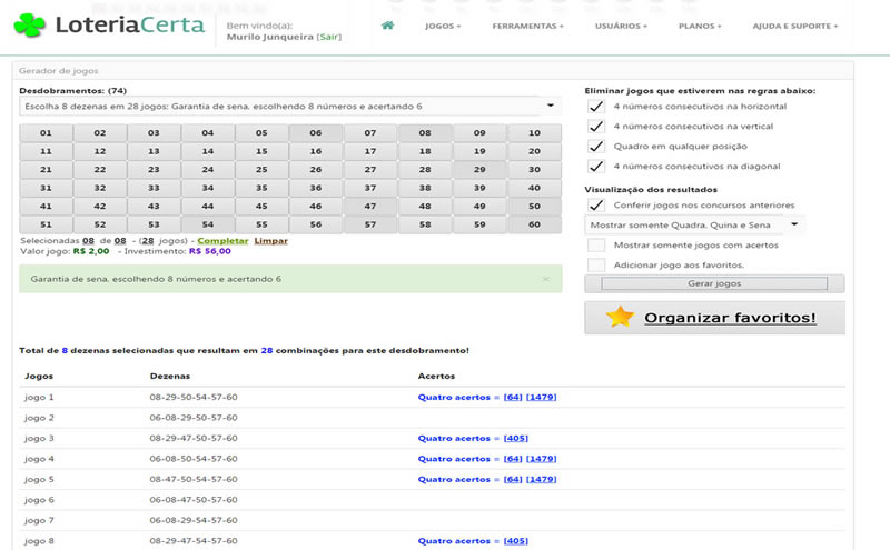 Loteria Certa Desdobramentos da Mega Sena