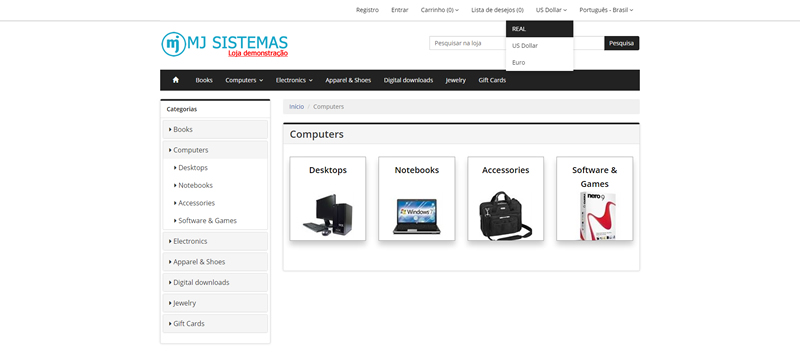 - Suporte a vários idiomas, moedas, meios de pagamento, cálculos de taxas de entrega.